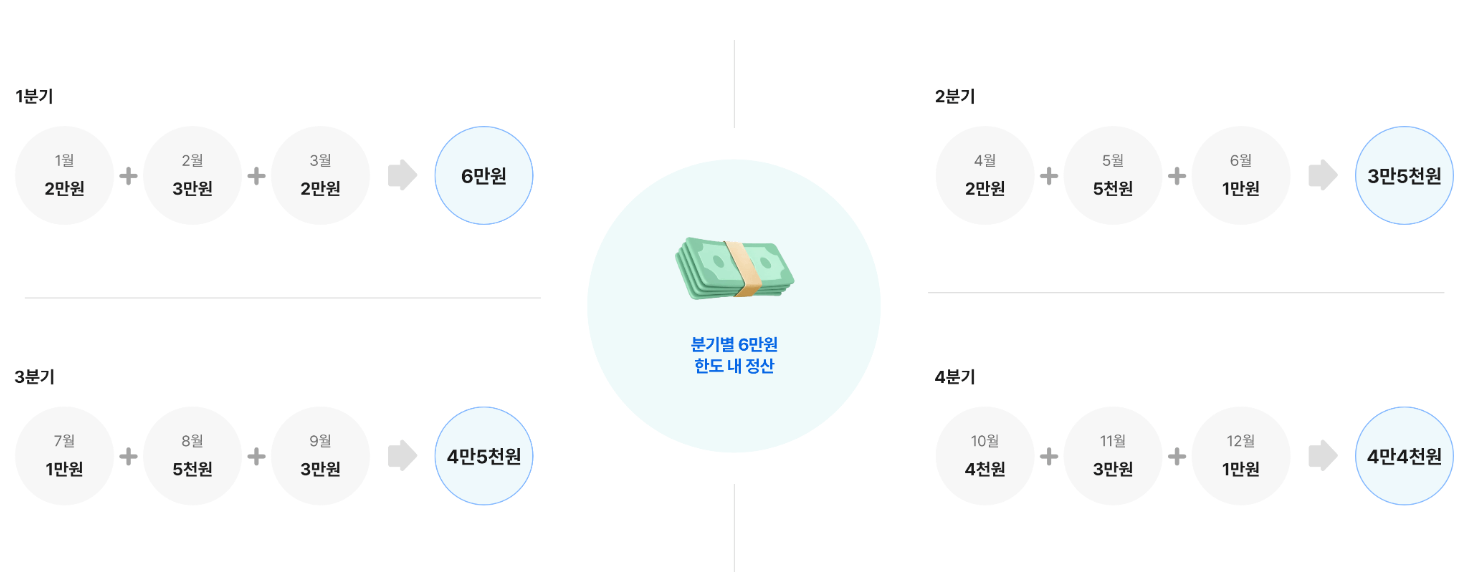 • 분기별 최대 6만 원, 연간 최대 24만 원까지 지원