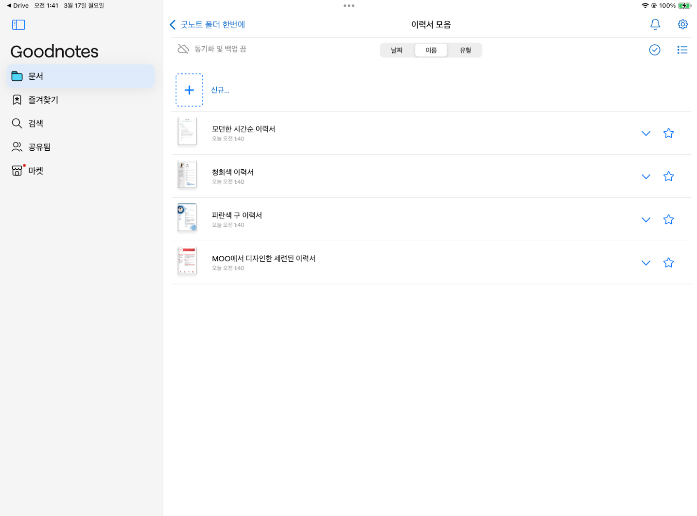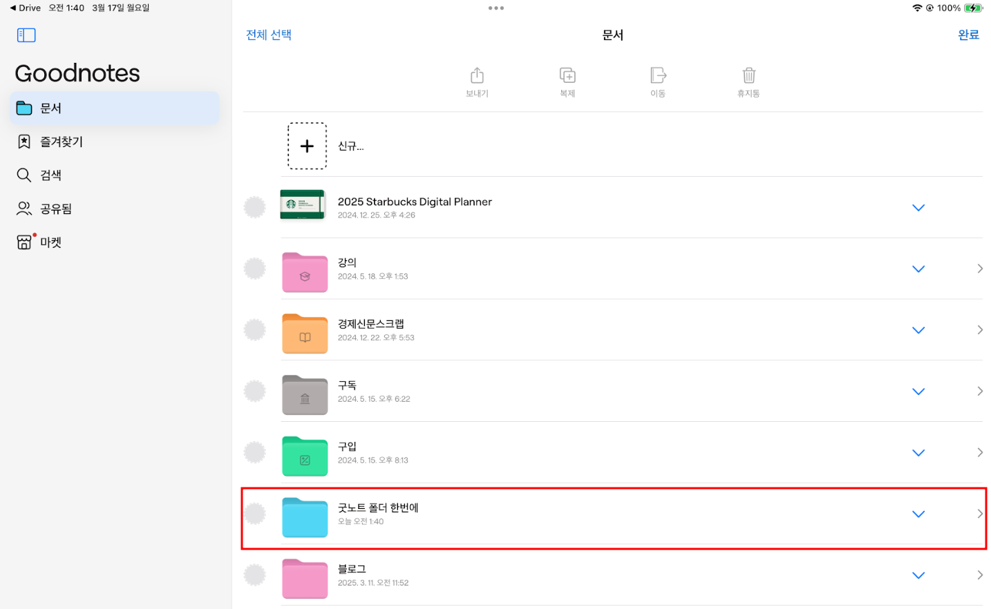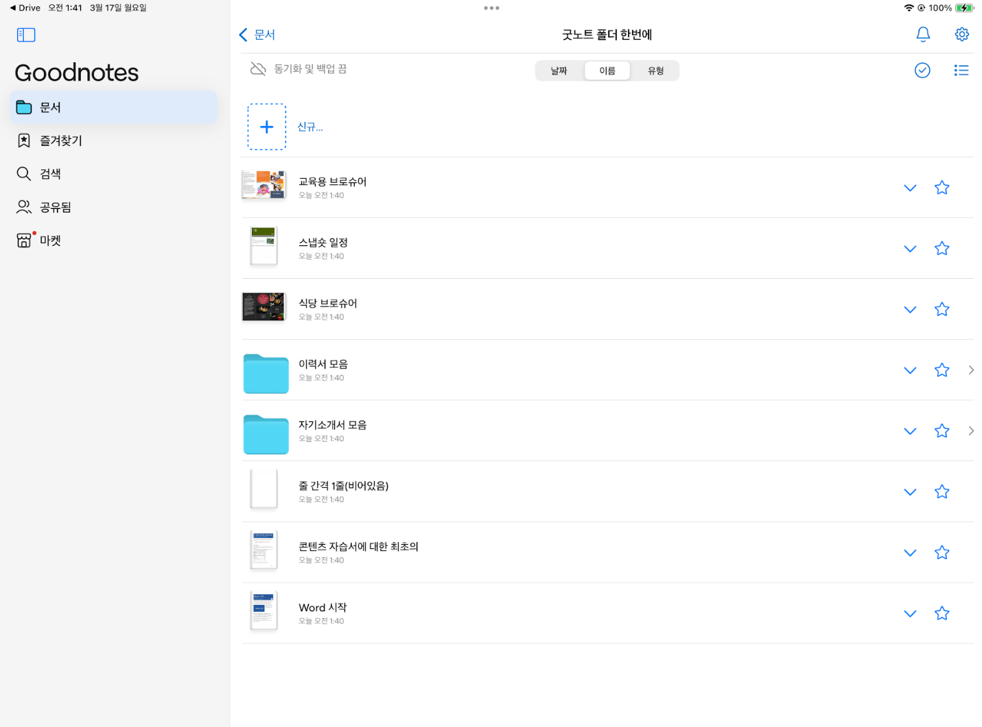 압축했던 폴더의 pdf 파일이 굿노트로 불려온 것을 확인 할 수 있습니다.