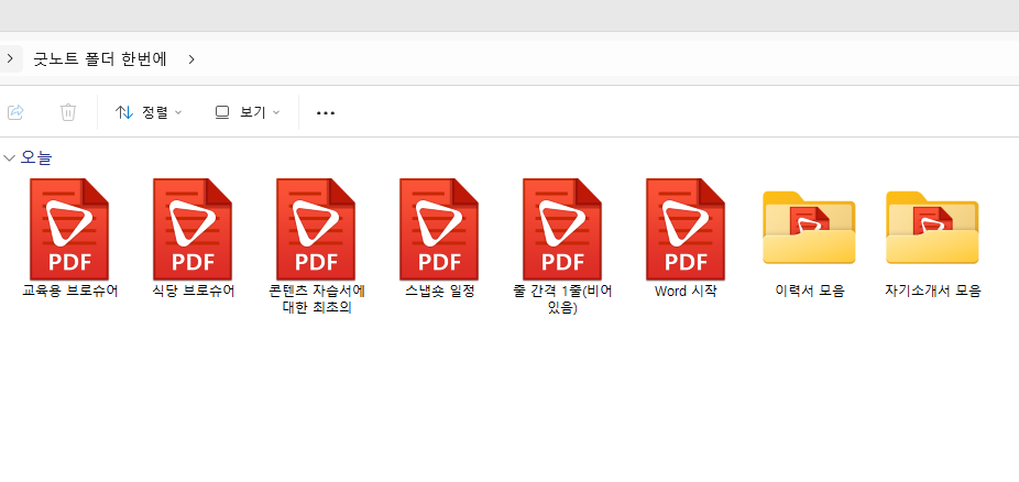 먼저, 굿노트로 옮길 PDF 파일을 정리합니다. 저의 경우 설명을 드리기 위해 임의로 Word 파일을 pdf 파일로 만들었습니다. 폴더에 정리한 구성 그대로 굿노트에서 열리니 원하는 구성으로 미리 정리해둡니다.