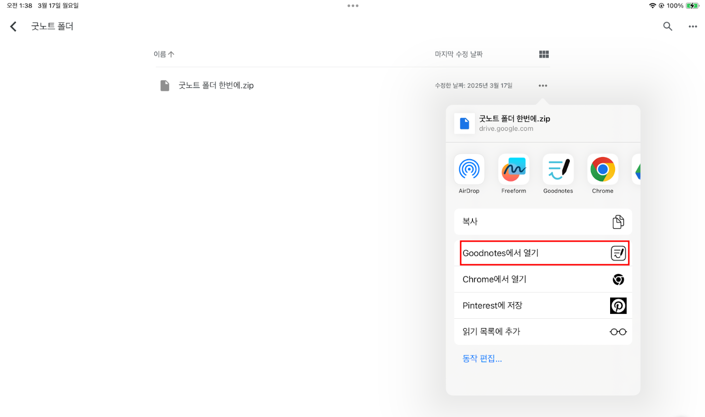 4-3 목록에서 Goodnotes에서 열기를 선택합니다.