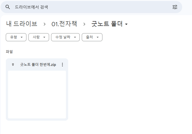 압축한 ZIP 파일을 Google 드라이브, OneDrive, iCloud Drive 등 클라우드 스토리지에 업로드합니다. 저의 경우 구글드라이브를 이용해서 업로드 하였습니다. 앞으로의 내용은 구글드라이브를 기준으로 작성합니다.