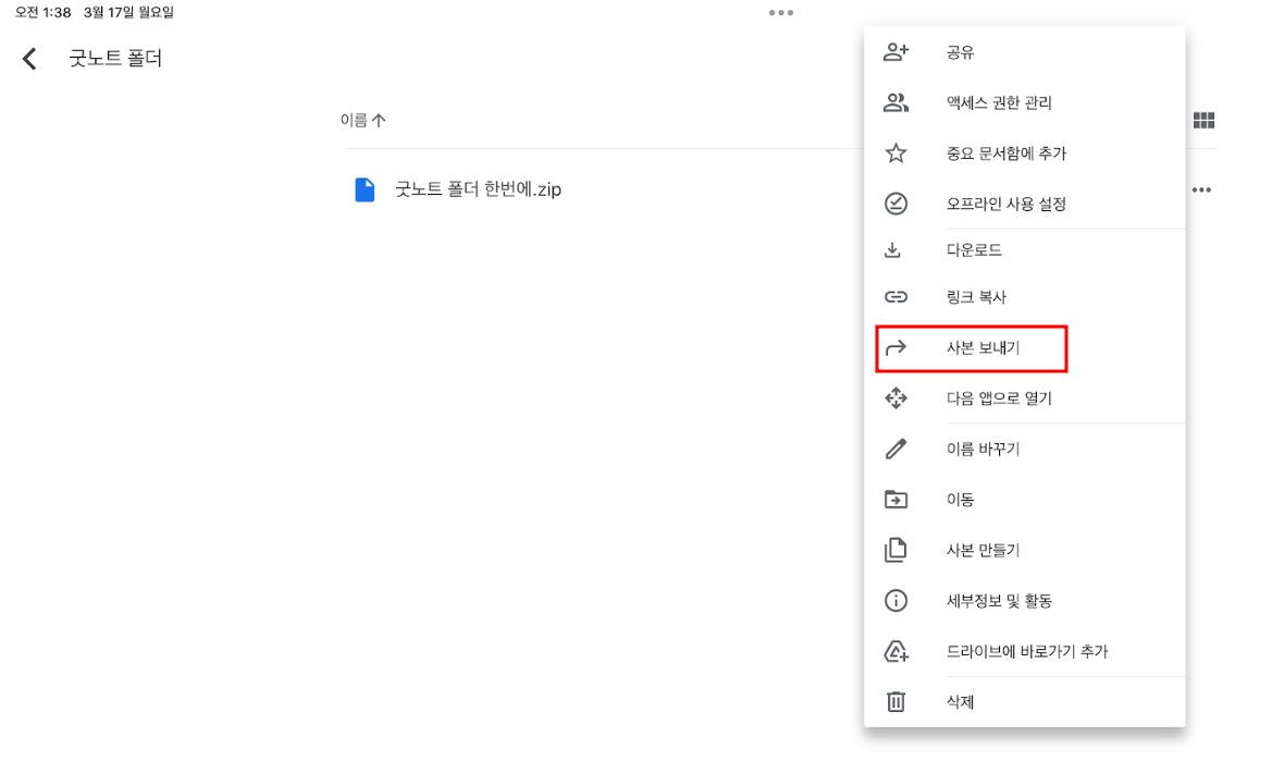 4-2 상세 정보에서 사본보내기를 선택합니다.