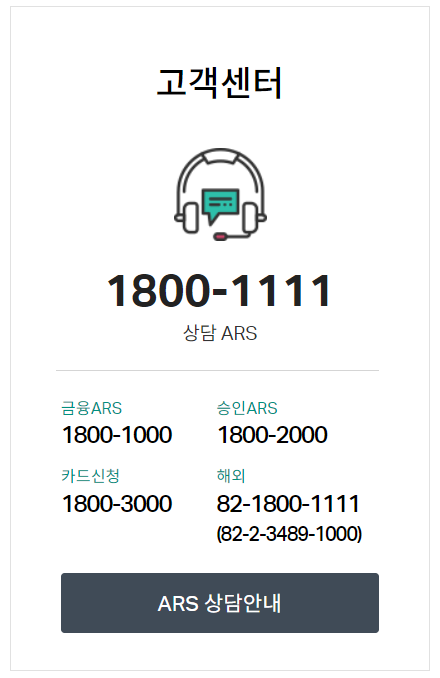 하나카드 고객센터 : 1800-1111