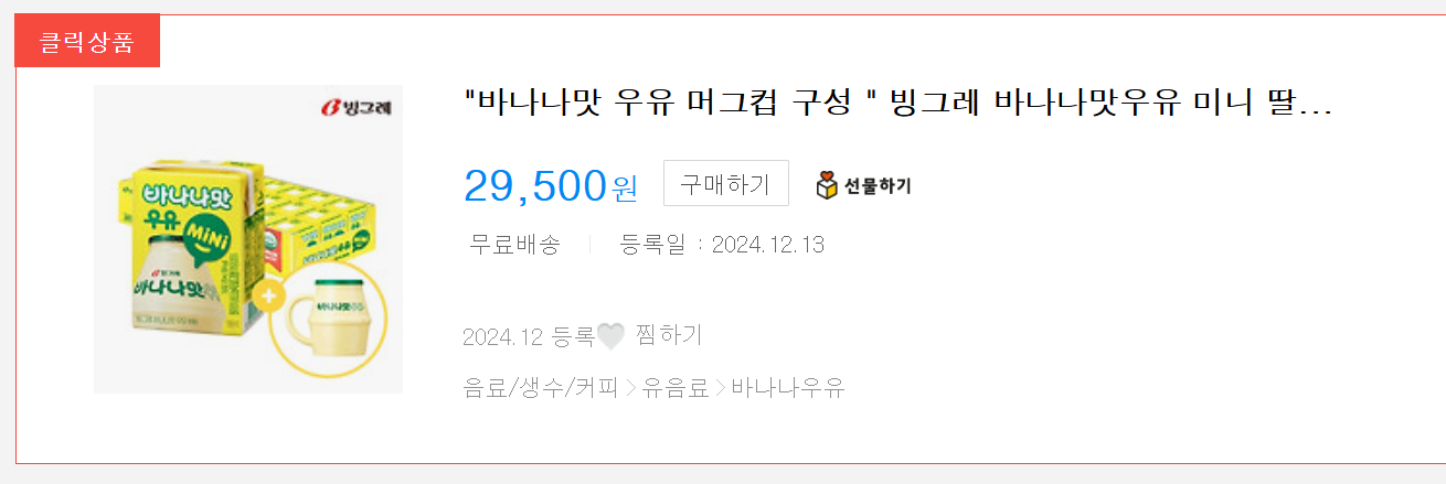 홈플러스에서도 판매되지만 주변에 홈플러스가 없는 관계로 미니바나나맛우유 24팩을 구매하면 주는 증정품을 온라인 마켓을 이용했다. 배보다 배꼽이 큰거 같지만, 뚱바 일반버전은 양이 많아서 남겼었는데 작은 미니팩은 유통기한도 길고 한입 먹기에 적당해서 잘 산거 같다는 생각도 들었다.