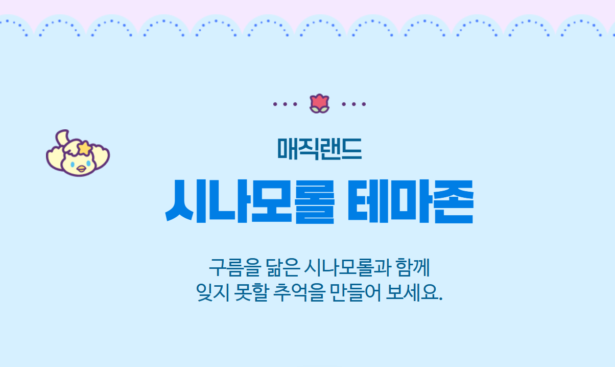 - 시나모롤의 달콤 가든: 달콤한 간식과 시나모롤의 귀여운 장식이 가득한 공간