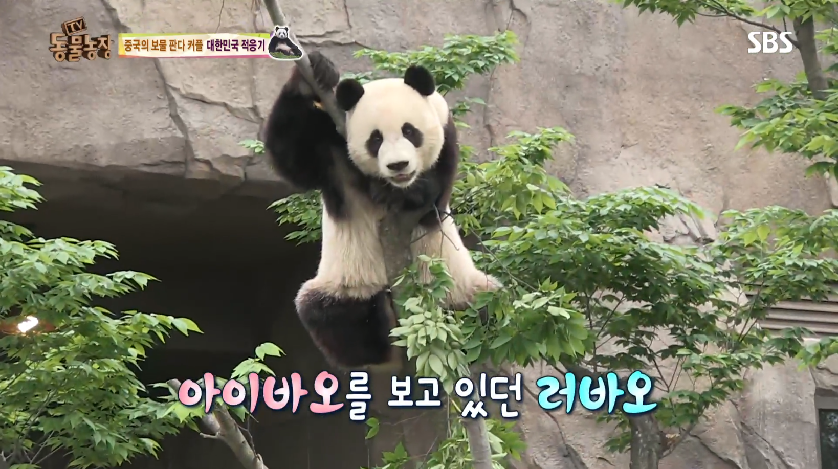 아이바오의 적응하는 모습을 지켜보고 있었던 러바오