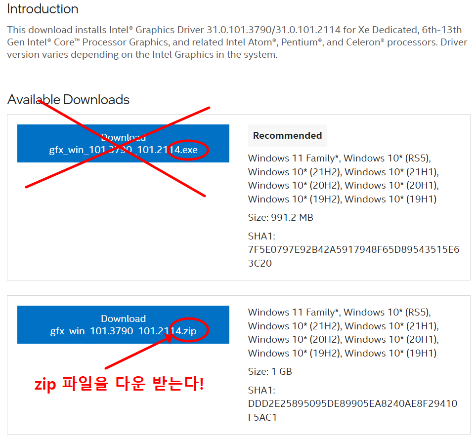 그래픽 드라이버 업데이트 오류인걸 확인했는데 인텔에서 파일 다운로드하고 설치했는데 실행이 안된다..!!