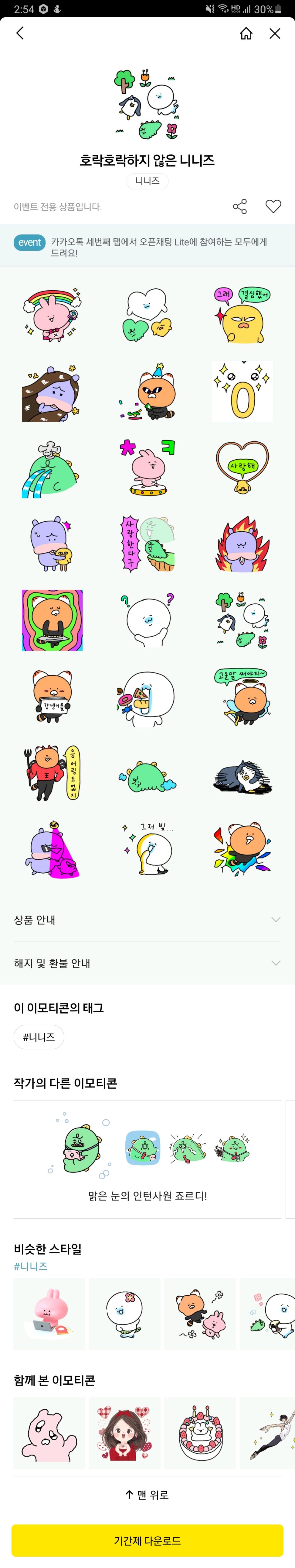 카카오톡 니니즈 이모티콘 무료 다운로드 이벤트 중입니다~