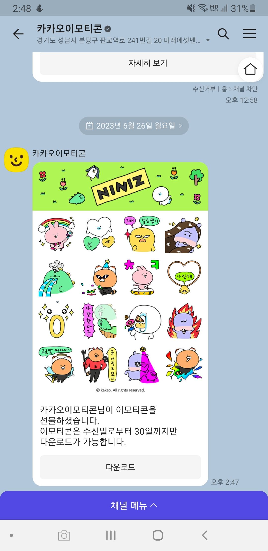 카카오톡 이모티콘 다운로드 방법