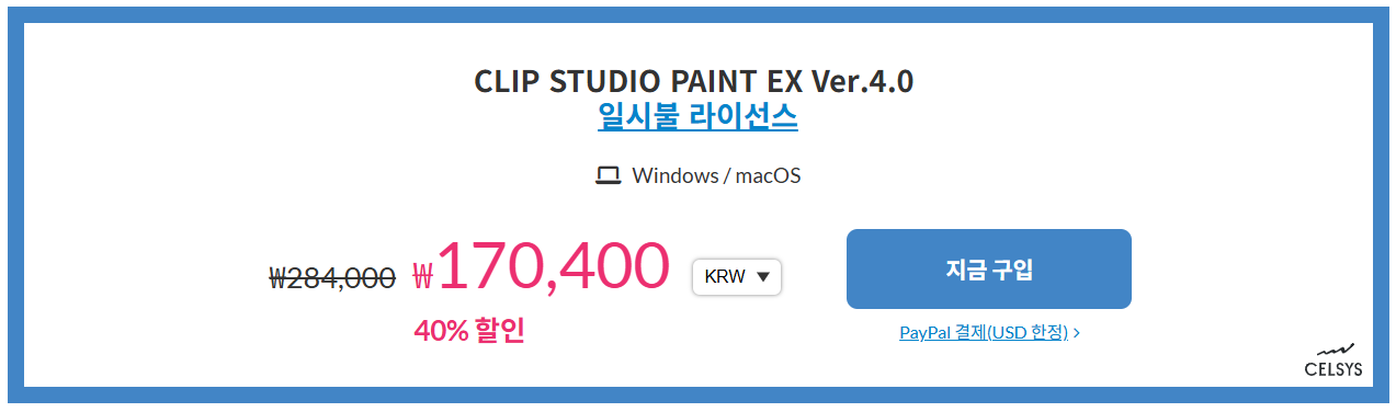 2) CLIP STUDIO PAINT EX Ver.4.0 (일시불 라이선스)
