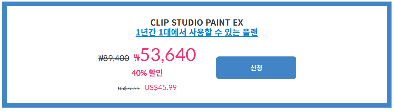 4) CLIP STUDIO PAINT EX Ver.4.0(1년/1대)