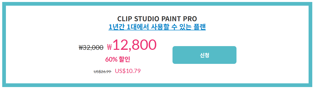 3) CLIP STUDIO PAINT PRO Ver.4.0(1년/1대)