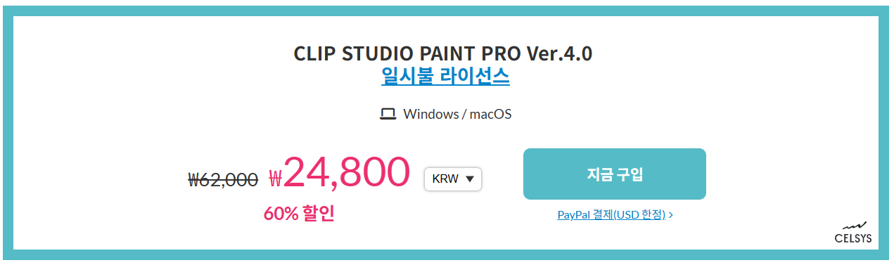 1) CLIP STUDIO PAINT PRO Ver.4.0 (일시불 라이선스)