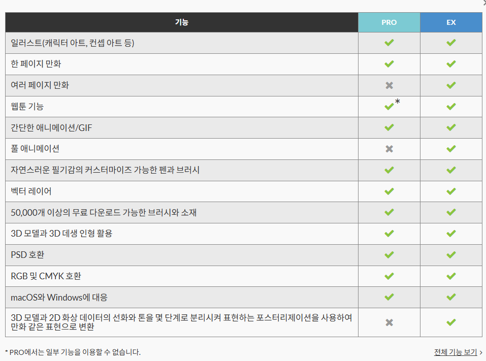 5. CLIP STUDIO PAINT PRO 및 EX Ver.4.0 기능비교