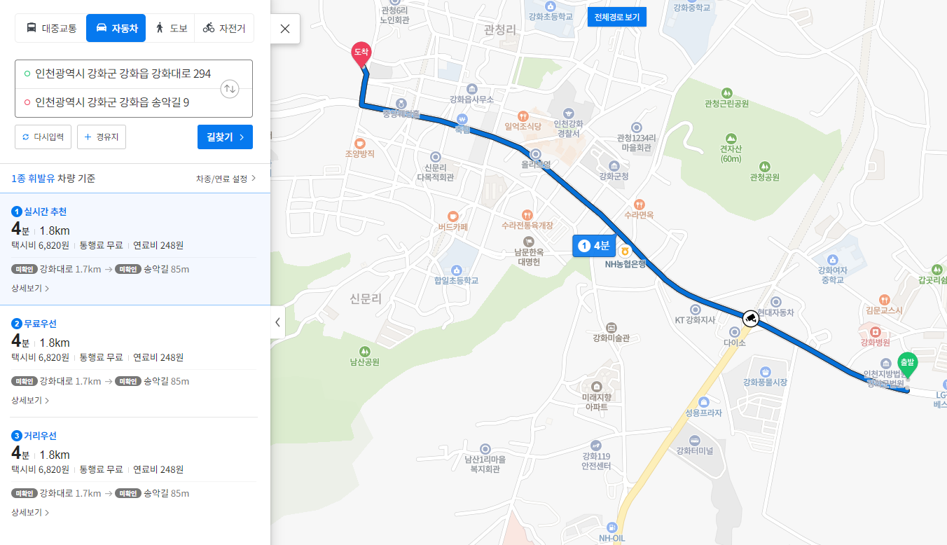 인천 강화군 -> 경기 김포시 자동차로 35분 거리