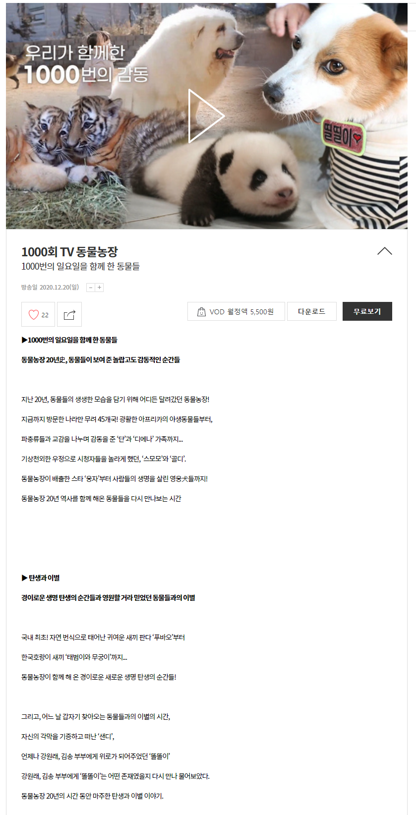 방송일 2020.12.20(일) - 1000회 1000번의 일요일을 함께 한 동물들