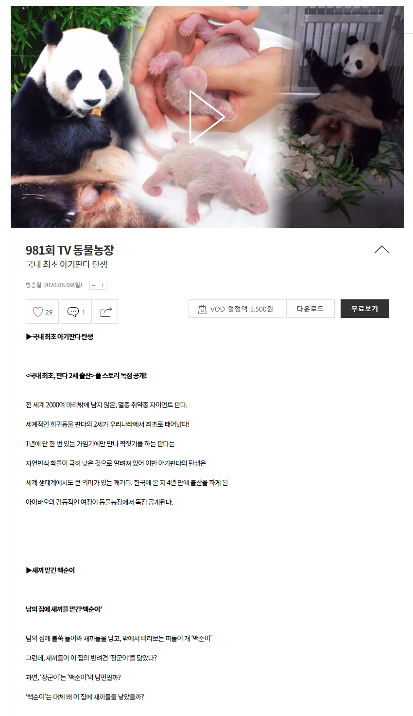 방송일 2020.08.09(일) - 981회 국내 최초 아기판다 탄생