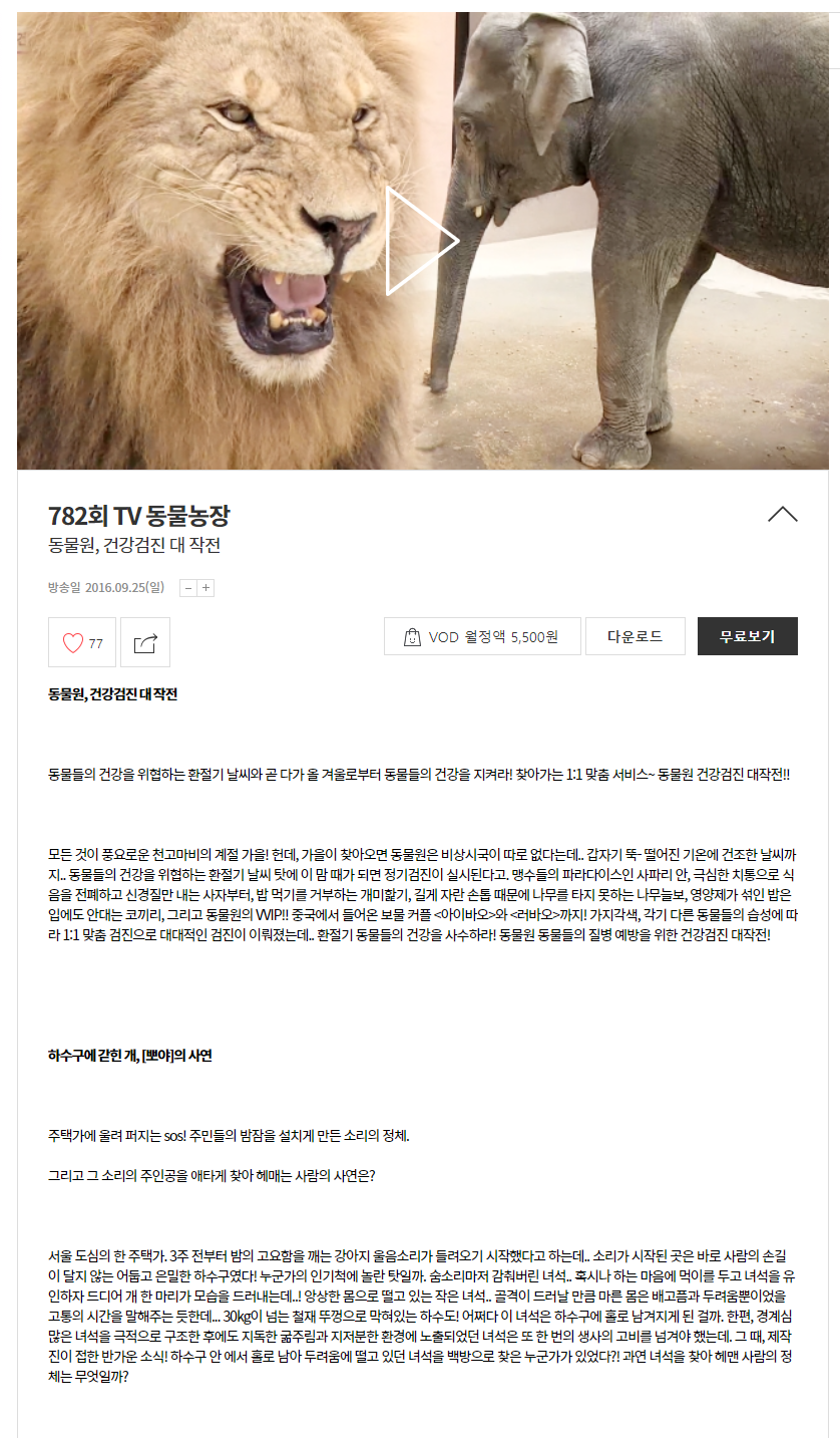 방송일 2016.09.25(일) - 782회 동물원, 건강감진 대 작전