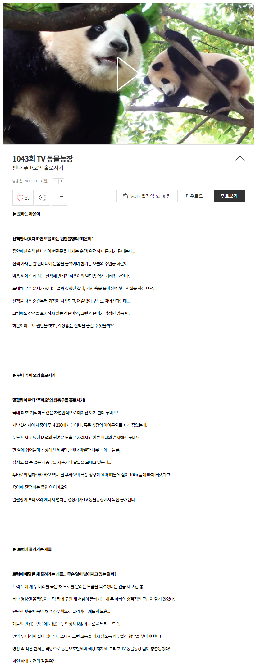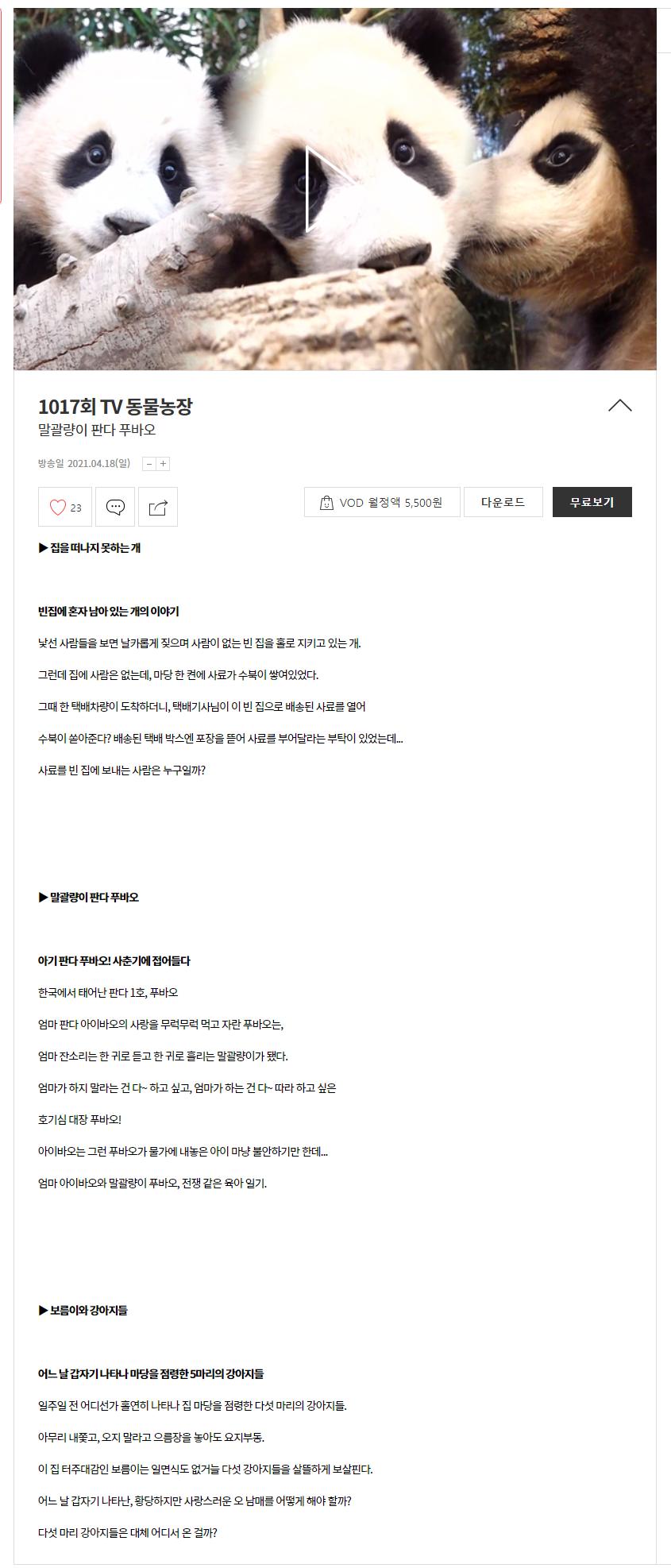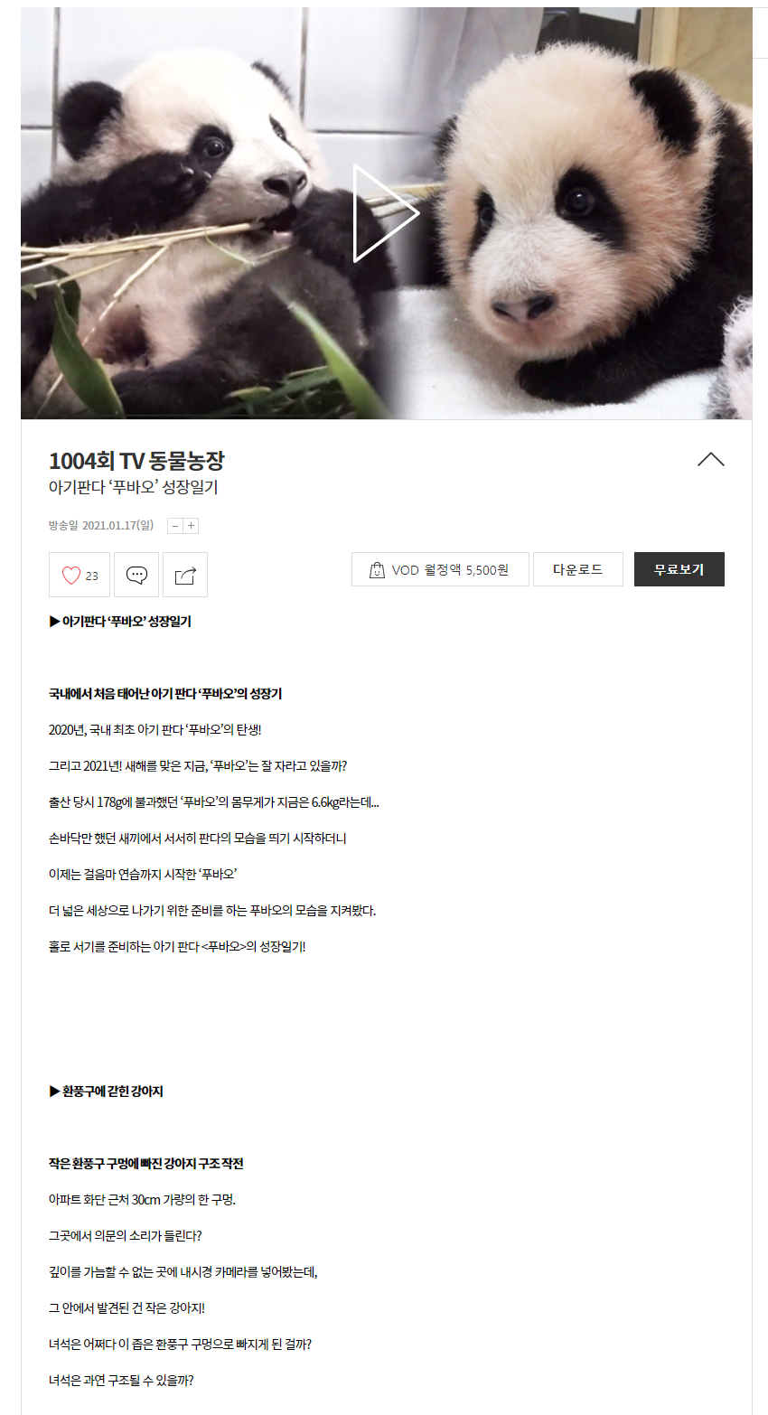 sbs TV동물농장에는 아이바오 러바오 푸바오만 방송된게 아니더라구요!