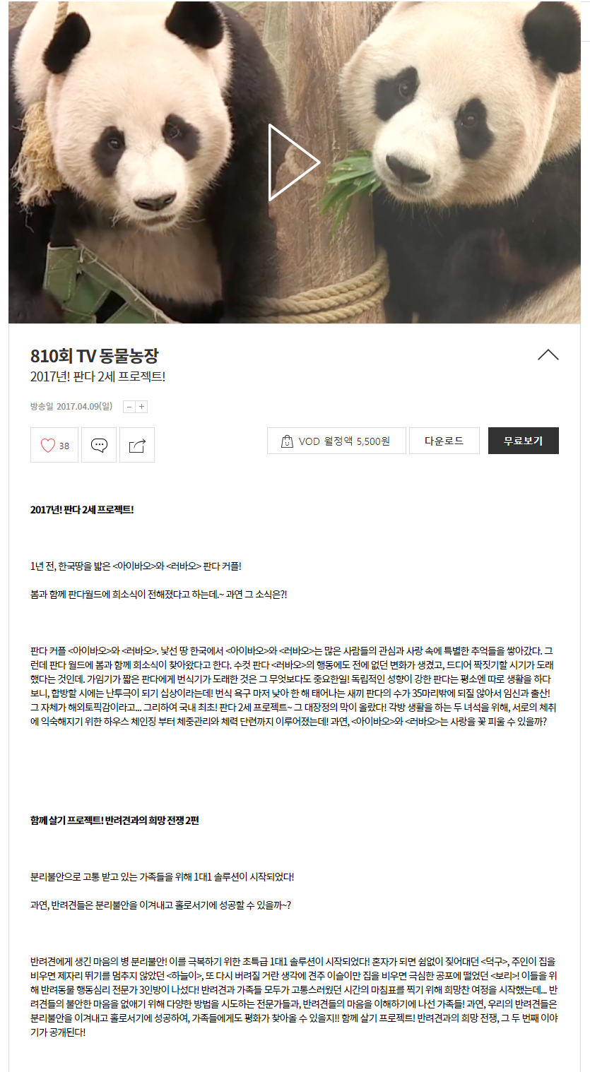 방송일 2017.04.09(일) - 810회 2017년! 판다 2세 프로젝트!