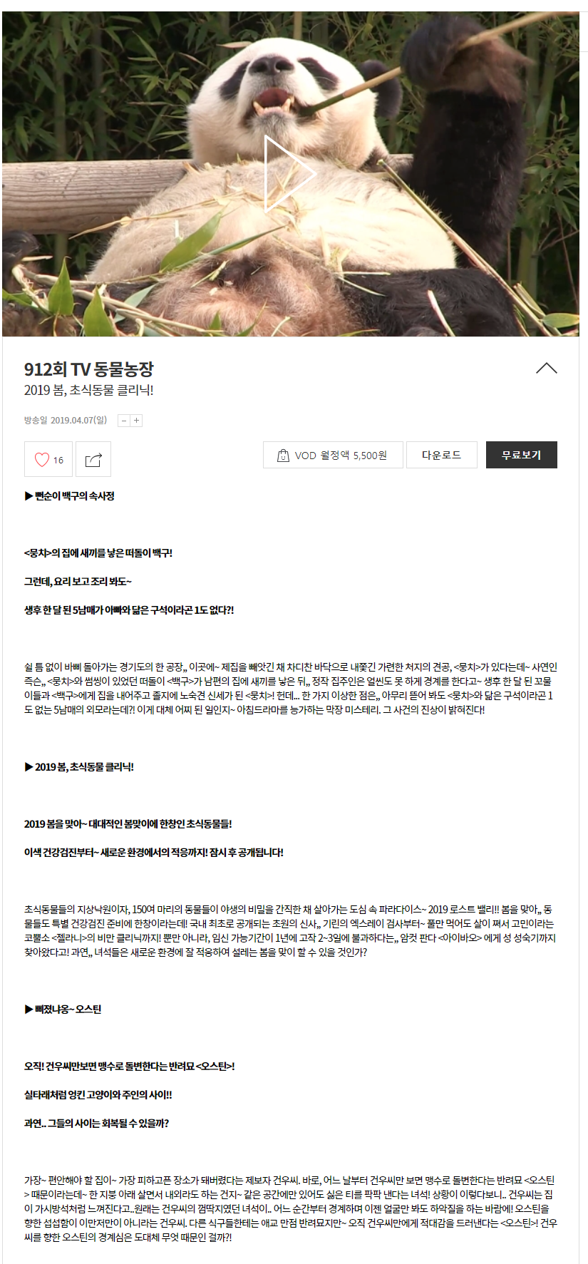 방송일 2019.04.07(일) - 912회 2019 봄, 초식동물 클리닉!