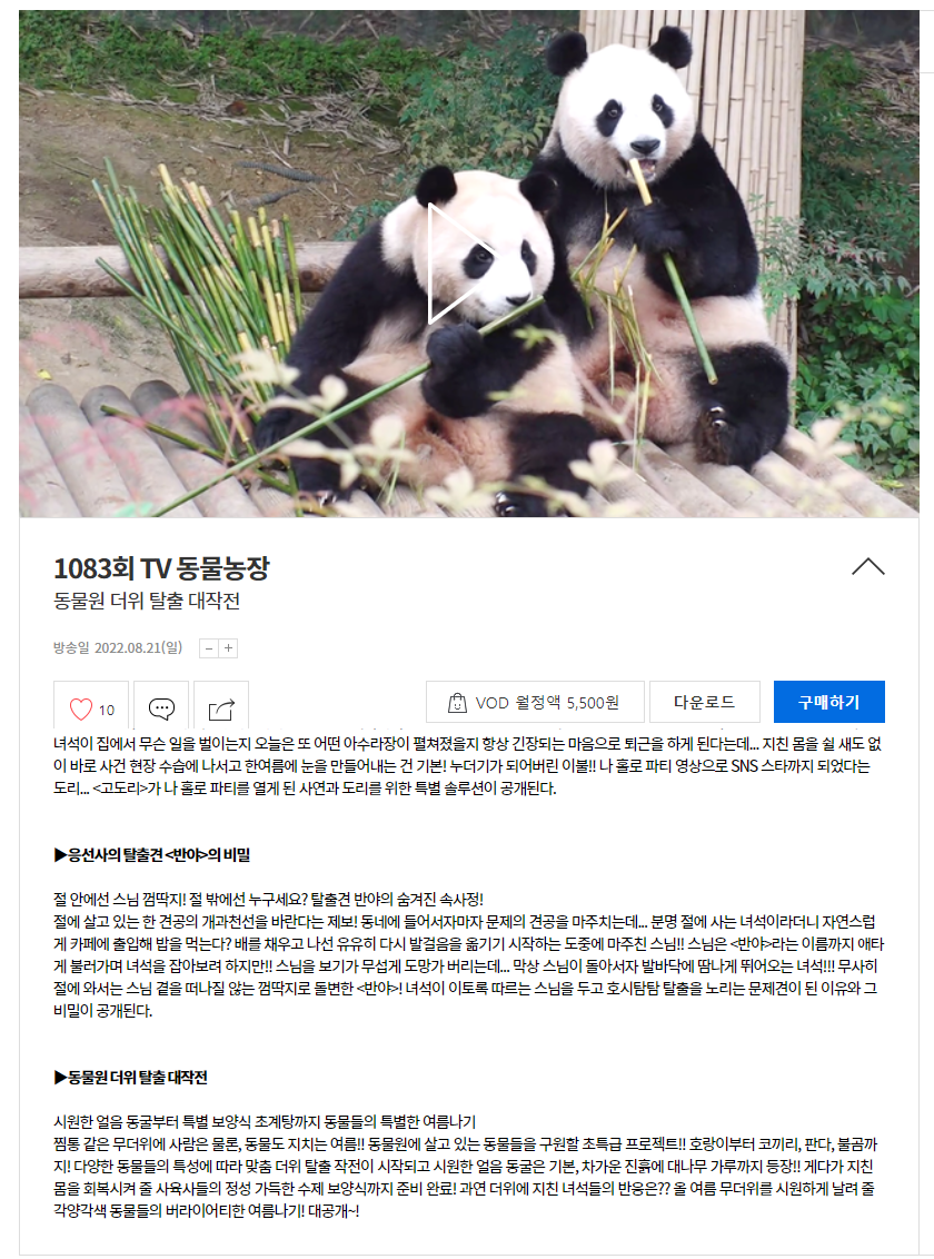 2000년대 TV동물농장 판다 방송 정보를 알고 싶으신 분은 아래 클릭하면 볼 수 있습니다~