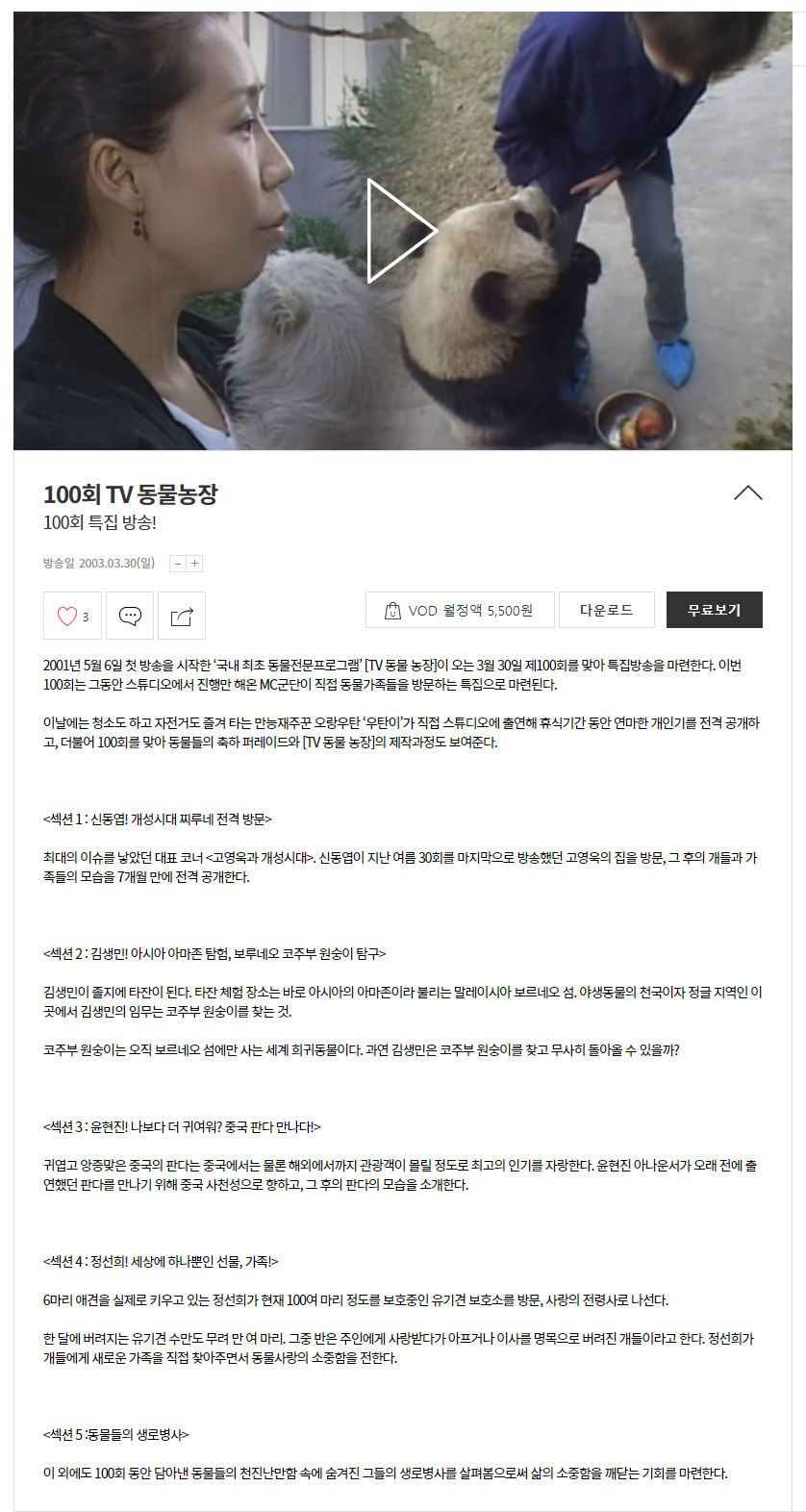 방송일 2003.03.30(일) - 100회 특집방송 판다 인공수정 과정 공개