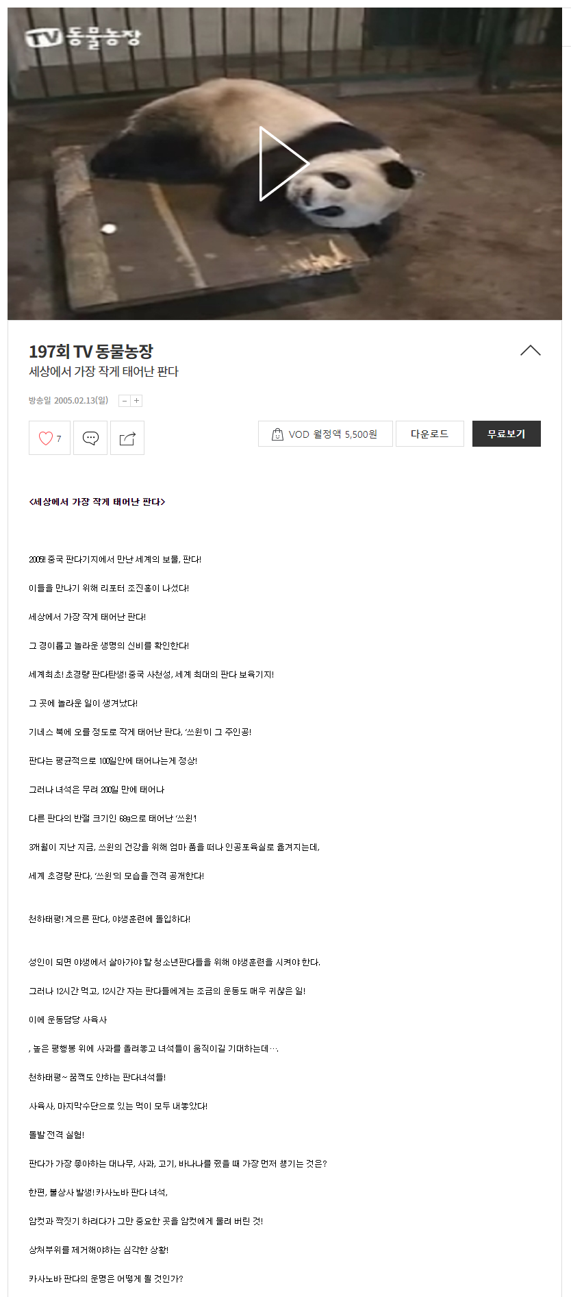 방송일 2005.02.13(일) - 197회 세상에서 가장 작게 태어난 판다