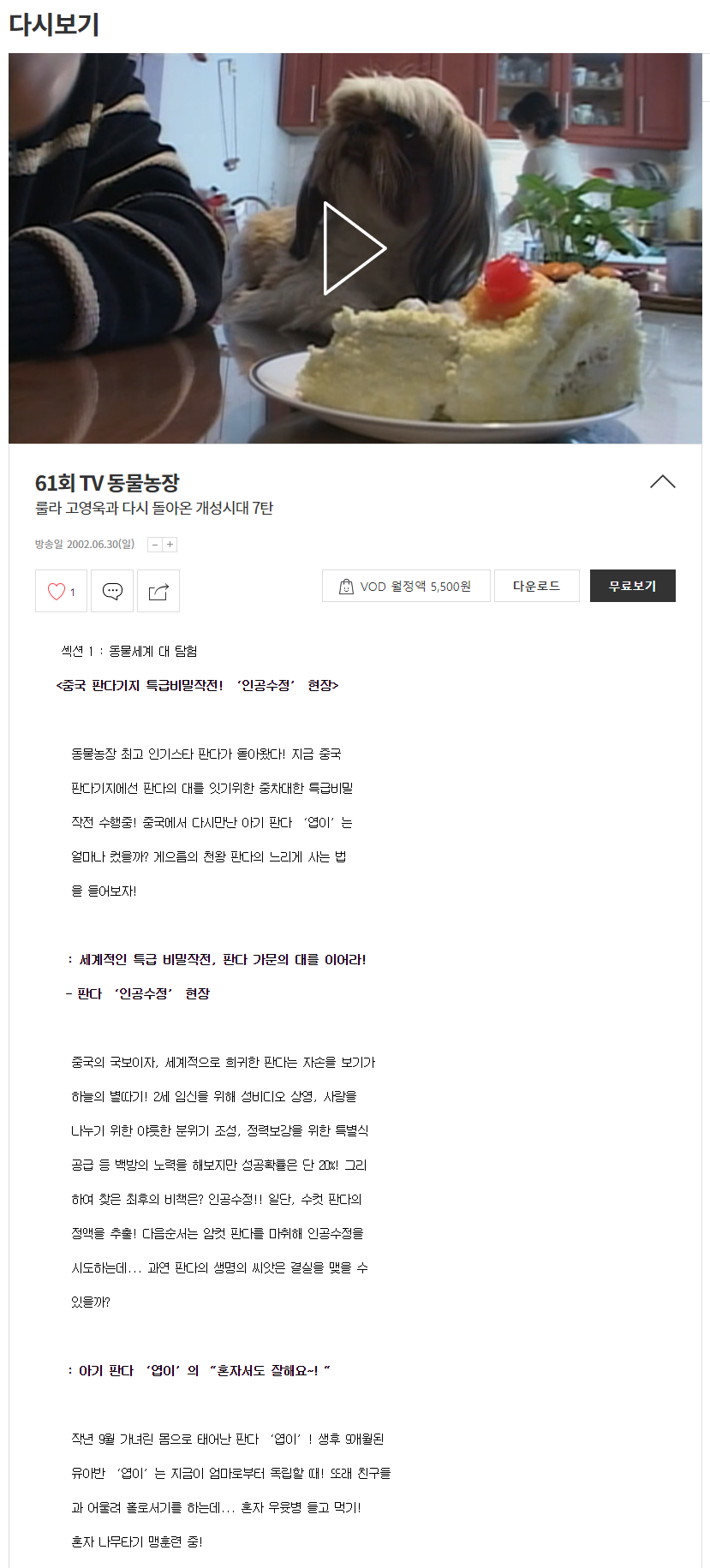 방송일 2002.06.30(일) - 61회 중국 판다기지 특급비밀작전! '인공수정' 현장